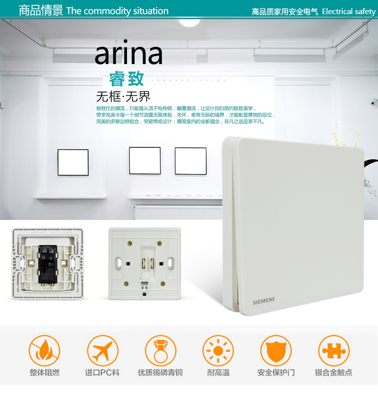 西门子开关插座-无框无界-睿致炫白-单开单控-高端平板