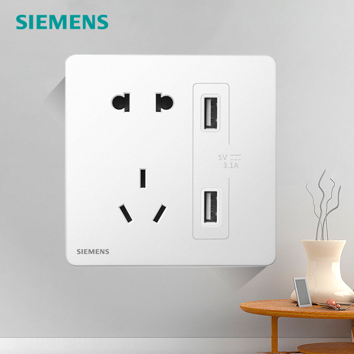 西门子开关插座-大板-睿宸象牙白五孔+双USB