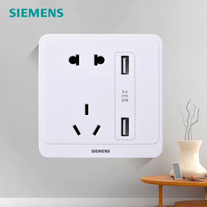 西门子开关插座-大板-远景pro玉釉白 五孔+双USB
